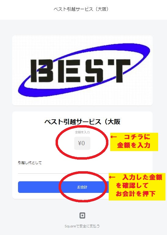 金額のご入力 必要事項のご入力 お支払い 領収書の受取り 各支店のクレジットカード決済は以下よりお願いします。 ベスト引越サービス大阪 今すぐ支払う ベスト引越サービス東京 今すぐ支払う ベスト引越サービス横浜 今すぐ支払う ベスト引越サービス福岡 今すぐ支払う ベスト引越サービス神戸 今すぐ支払う
